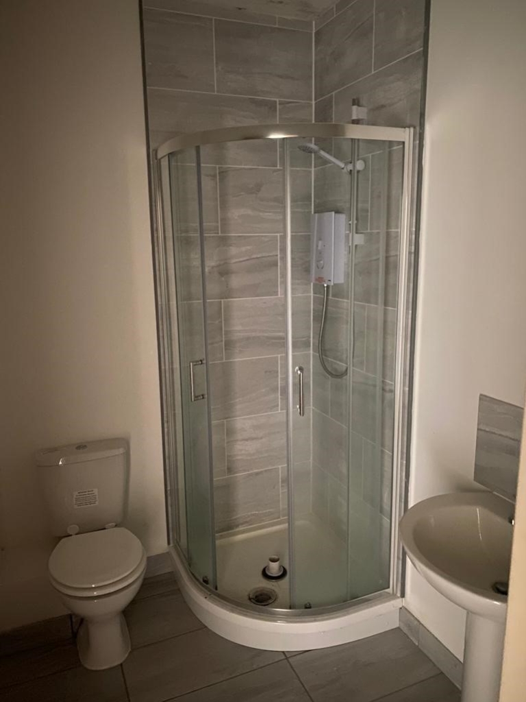 The bedrooms have glazed windows to the rear aspect, ceiling light point and wall mounted heater. Tiled shower cubical with wall mounted shower, low level WC and pedestal hand wash basin. Recess lighting, laminate floor and extractor fan.